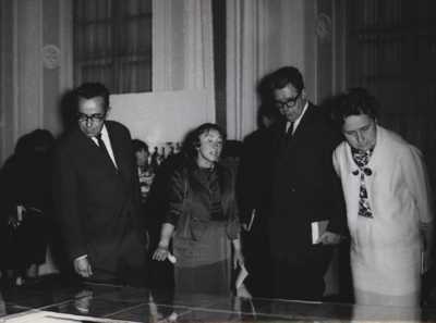Prezentujemy kilka zdjęć z tej wystawy. Widzimy na nich Marię Prokopowicz oprowadzającą po wystawie uczestników Konferencji, w tym Prezydenta IAML – André Jurres'a z Holandii. |